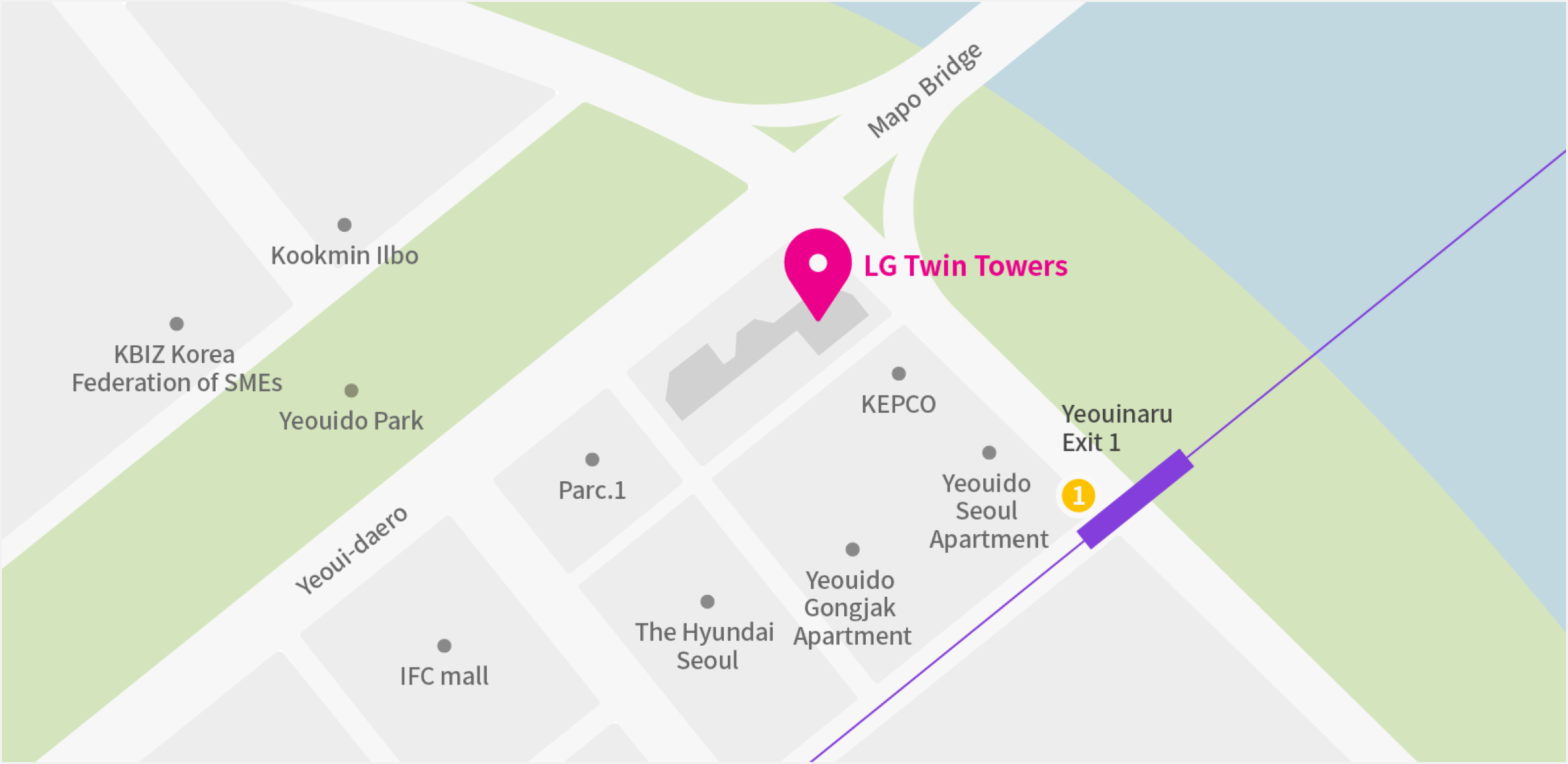 5 minutes on foot from Exit 1 in the direction of Yeouido Park